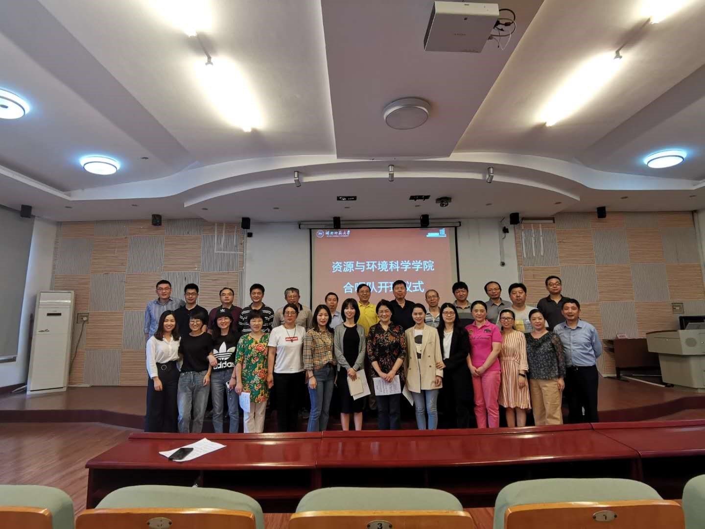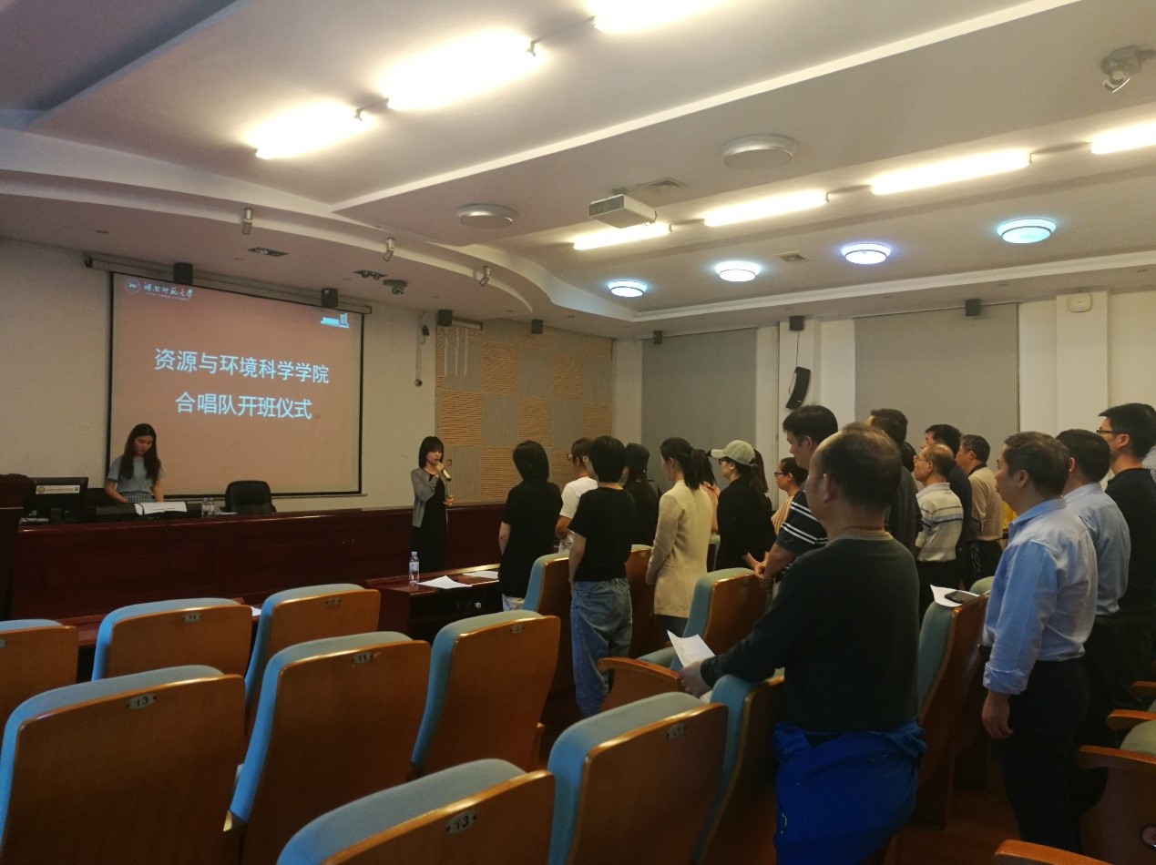 (通讯员 王婷)“万水千山不忘来时路,荣辱与共同筑中国梦”。为庆祝新中国成立70周年,丰富教职工文化娱乐生活,资源与环境科学学院部门工会在院党委的指导下积极响应学校工会关于举行“为祖国歌唱—庆祝新中国成立70周年”教职工合唱比赛的部署,积极筹划,广泛宣传、精心组织,成立了“资环学院合唱队”,于5月23日下午在学院301报告厅举行了合唱队的开班仪式。学院党委书记彭才华及40多位老师参加了合唱队开班仪式。开班仪式由院工会主席陈媛主持。
