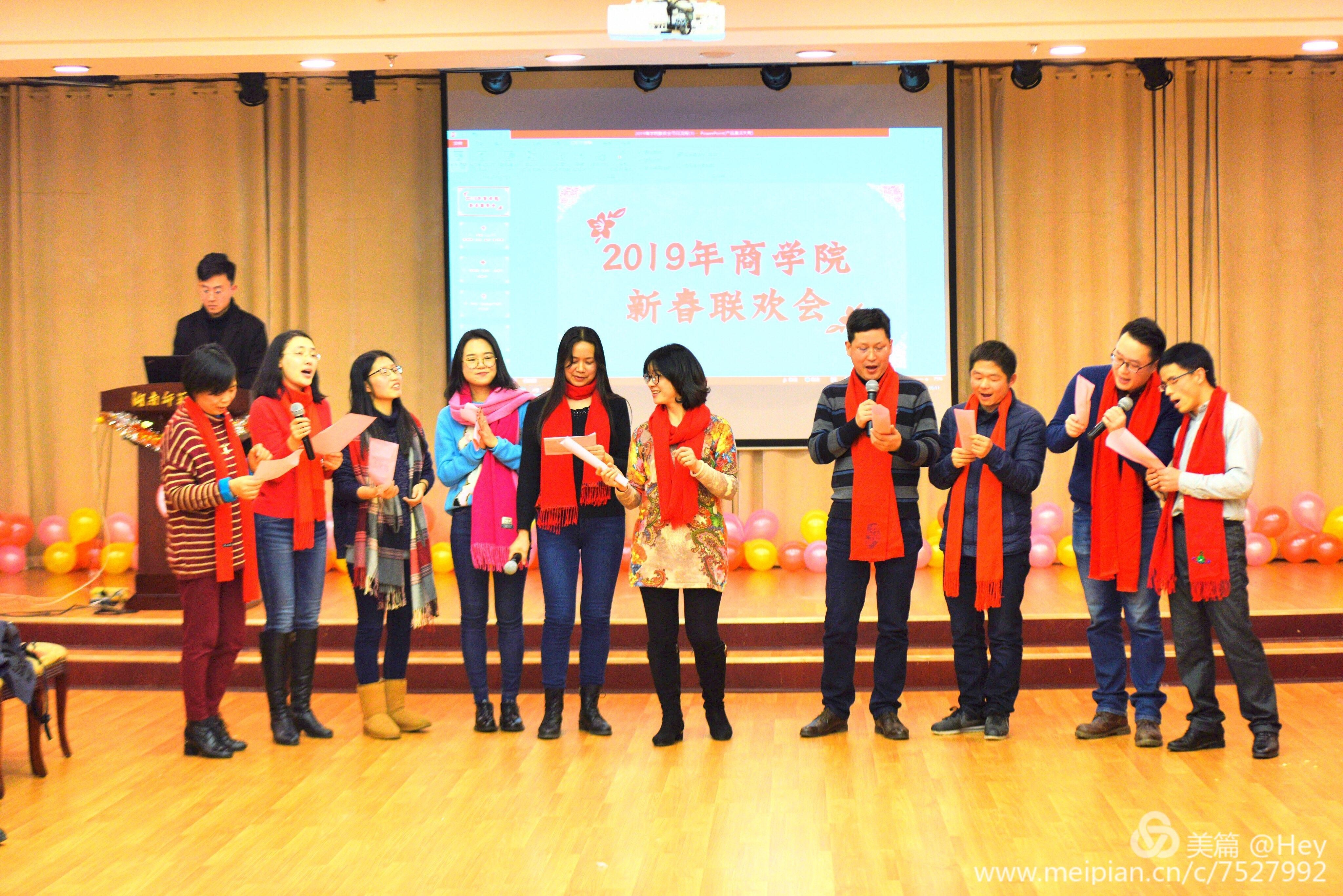 (供稿 商学院工会)1月19日下午,商学院在红楼五楼会议室举行2019年新春联欢会暨学院年度总结大会。研究生院院长刘子兰,商学院院长李军,院党委书记何勇、副书记陈君,副院长李红权、袁冬梅、杜平出席本次活动,与全体教职工欢聚一堂,共贺新春。