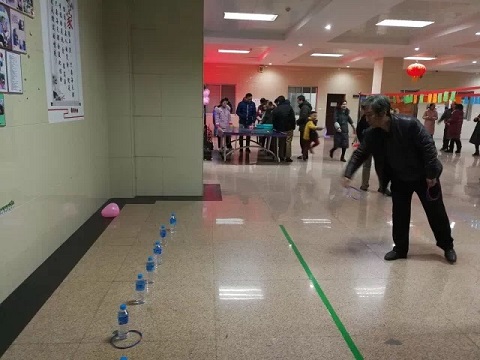 在学院领导的大力支持下,学院工会成员精心的组织下,游艺会于下午4点30准时开始。游艺会主要以游戏的形式进行。各位老师在“快乐毽子”游戏中,一展拳脚,踢得不亦乐乎。“趣味猜谜”游戏吸引了一群群的老师们,三五成群,你一言我一语,运用集体的智慧破解谜面。学院大厅气氛其乐融融,老师们的身影在“百发百中”、“蒙眼敲鼓”、“掌上明珠”、“夹乒乓球”等游戏中穿梭。