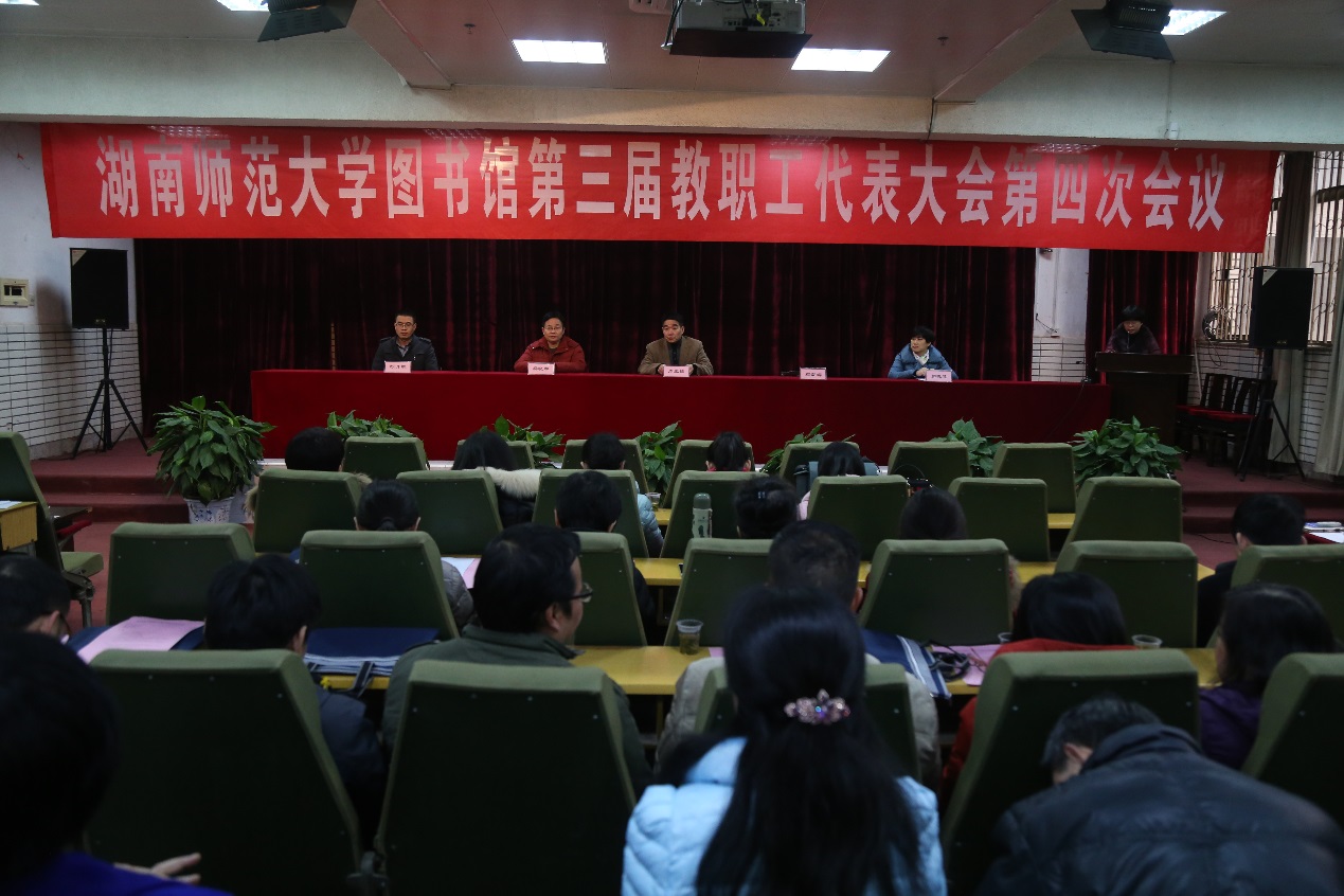 1月13日上午,图书馆第三届教职工代表大会第四次会议在报告厅隆重召开,馆长周玉波、馆总支书记鄢朝晖、副馆长龚晓林、罗晓慧、胡开胜以及全体代表出席会议。会议由鄢朝晖主持。