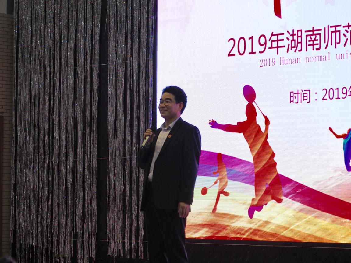 周玉波向运动员、裁判员、老师们、同学们表达了对此次比赛开幕的热烈祝贺,并宣布2019年树达学院教职工羽毛球团体赛开幕。