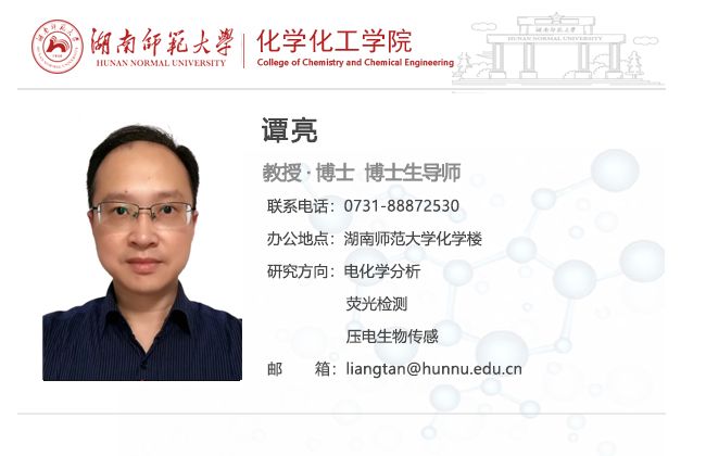 [1] 谭亮,陈超,魏琳,谭月明,马铭.分析化学(一)教学与科研互促的实践探索.大学化学,2021, 36, 2104002.