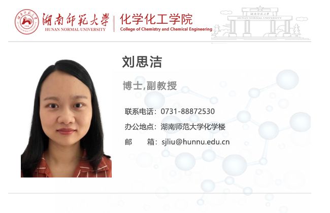 2022.08~至今 湖南师范大学化学化工学院讲师