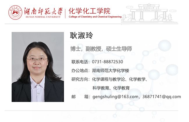 2006年—至今 湖南师范大学化学化工学院,教师,化学教育教学和研究工作