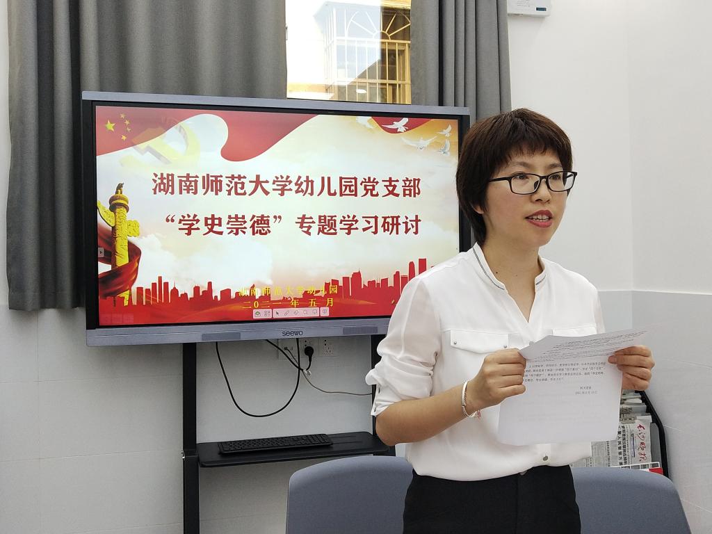 5月13日下午,幼儿园党支部在党建室围绕“学史崇德”主题,开展党史学习教育第三次专题学习研讨。会议由支部副书记许婷主持。