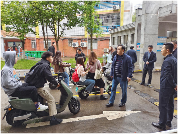 4月26日—28日保卫处联合后勤管理处、学生工作处、房产处、橘子洲街道、交警岳麓大队四中队等部门,在天马学生公寓开展了“佩戴头盔,安全出行”的专项宣传教育整治行动。在现场宣传教育和劝导,共劝返和纠正驾乘电动车未佩戴头盔的同学共110人次。使师生在出行过程中遵守交通法规,养成“骑车必带盔”的良好习惯,确保“安全出行、文明出行”。