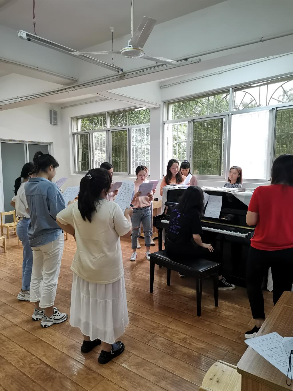 本次学唱红歌活动在徐惠书记地统筹安排下进行。党员同志通过提前熟悉歌曲,现场逐句学唱、集体跟钢琴伴奏唱等方式开展。“没有共产党就没有新中国,共产党辛劳为民族,共产党他一心救中国,他指给了人民解放的道路......”一句句撼人心魄的红色礼赞,承载着合唱队员们对党和祖国的讴歌与祝愿。