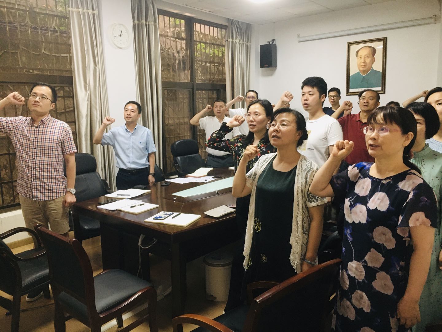 首先,宣传委员饶昊带领全体党员一起重温了入党誓词,并学习了习近平总书记“七一”重要讲话。他解读了习近平总书记“七一”重要讲话的七个关键词,对全体党员提出了学习六个方面的学习要求。