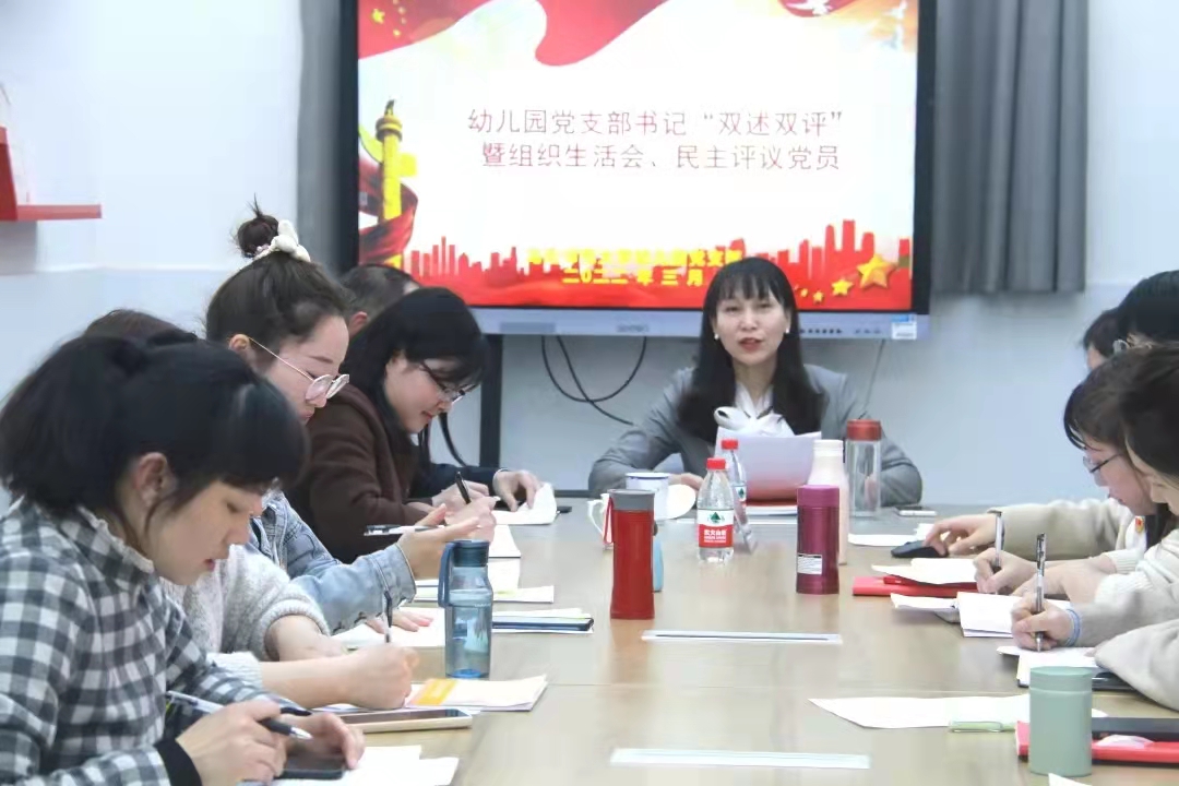 3月10日下午,幼儿园党支部在党建室召开党员大会,开展2021年度党支部书记“双述双评”暨组织生活会、民主评议党员活动。机关党委副书记粟用湘同志、机关党委秘书周沙莎同志到会指导。会议由党支部组织委员黄丽君同志主持。