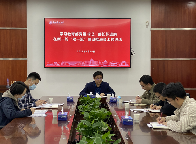 4月14日下午,发规处在校办楼二会议室召开“‘双一流’建设”专题学习会,学习研讨教育部党组书记、部长怀进鹏在新一轮“双一流”建设推进会上的讲话精神。处长孙岳兵主持会议并作学习报告。
