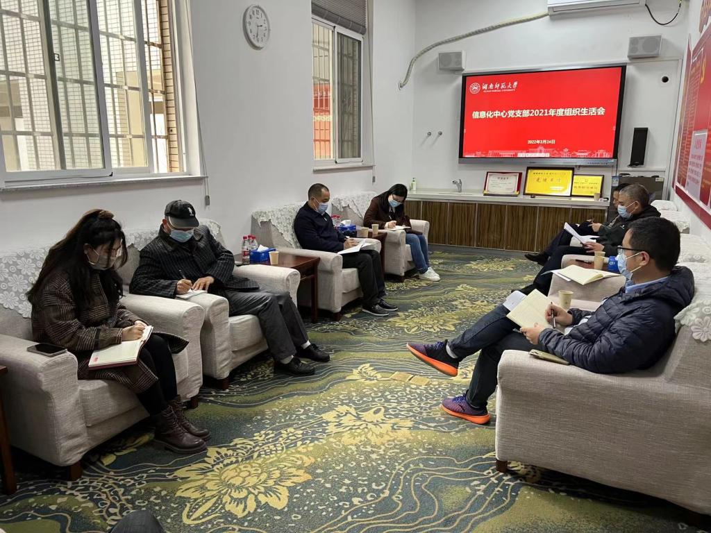 3月24日下午,信息化中心党支部在党员之家召开党员大会,开展组织生活会暨2021年度民主评议党员活动。机关党委副书记粟用湘同志到会指导并点评。会议由中心主任黄小兵同志主持。