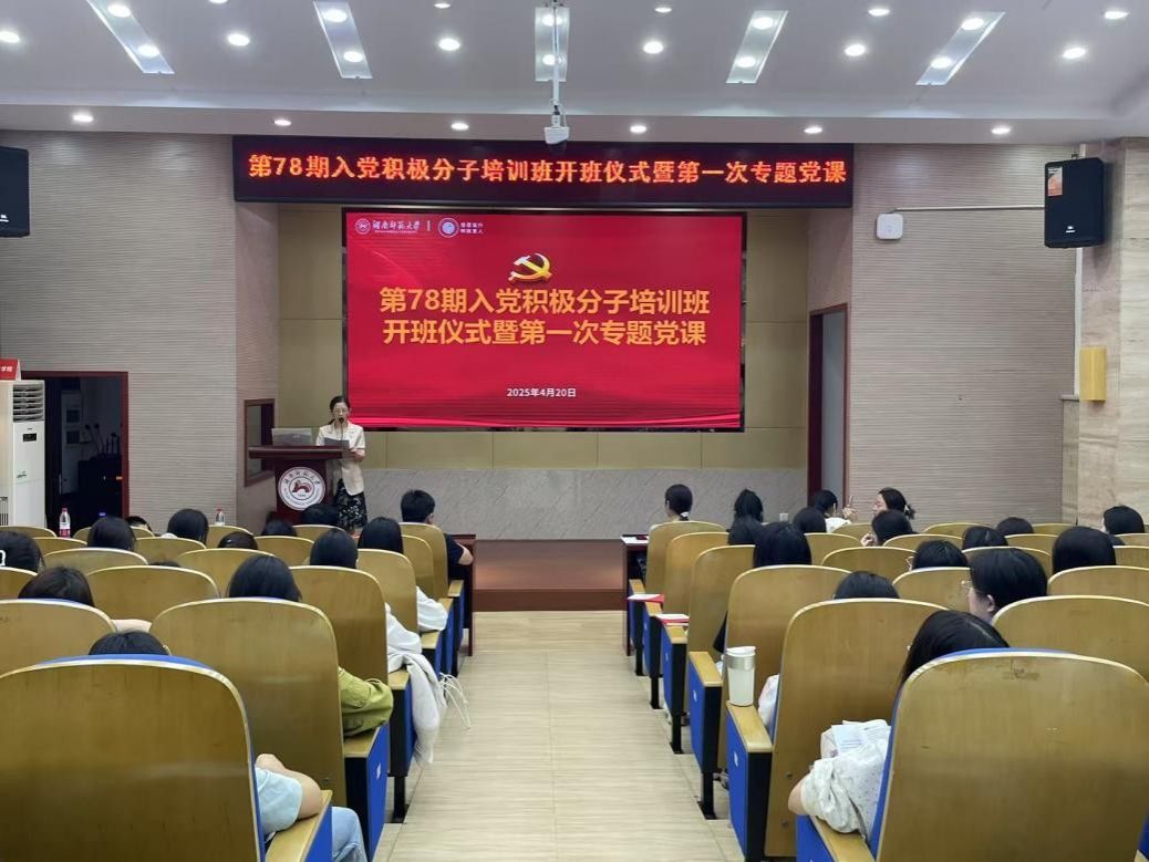 (通讯员 阮珍宁 陶瑜)4月20日晚,教育科学学院在学院101报告厅举行第78期入党积极分子培训班开班仪式暨第一次专题党课。学院党委书记向发意、校办副主任欧阳文芳、学工办辅导员庞瑞宇出席开班仪式。仪式由学院副处级组织员王赛波主持。