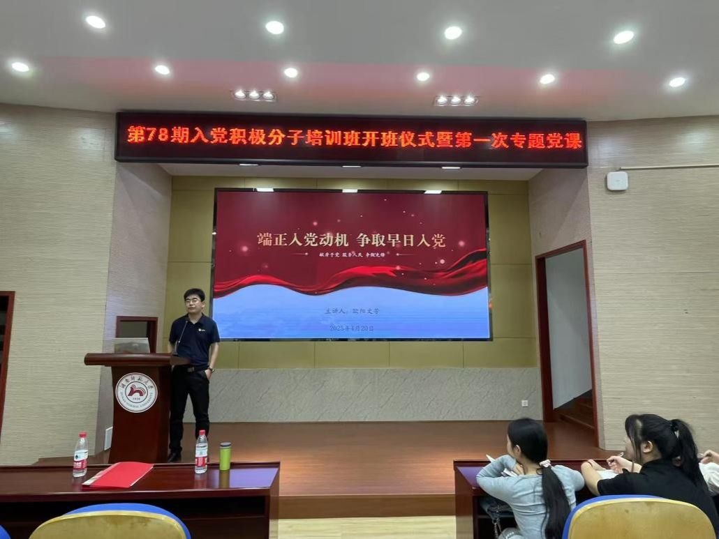 在庄重的开班仪式圆满结束后,欧阳文芳以“端正入党动机,争取早日入党”为主题,为全体学员讲授了首场专题党课。欧阳文芳从“端正入党动机”、“树立正确入党动机”、“端正入党动机的主要途径”三方面展开,以朱德万里寻党、贺龙七十次提出入党等革命先辈的光辉事迹为例,回答了什么是入党动机、为何要端正入党动机、如何端正入党动机等问题。让学员们深刻认识到组织入党领进“门”,思想入党才是党的“人”,入党不是一阵子而是一辈子的事。