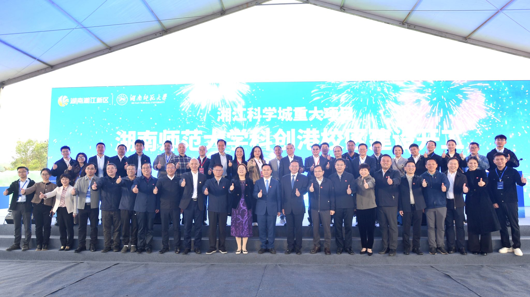 (记者 马铁泉 李采薇 黄依依 通讯员 王耀光)科创扬帆同启师大新程,三湘聚力共筑百年工程。9月26日上午,我校科创港校区建设开工仪式在湘江科学城举行。湖南省政协副主席李民,长沙市委副书记、湖南湘江新区(长沙高新区)党工委书记、岳麓区委书记谭勇,省发改委、省教育厅、省科技厅、省财政厅、省自然资源厅、省生态环境厅、省林业局、省体育局、省重点项目事务中心等厅局领导,校友代表,学校老领导,校长、中国工程院院士刘仲华,学校领导班子成员,各二级单位负责人,教师代表,学生代表和科创港校区参建单位代表等200余人参加开工仪式,共同见证我校发展史上的又一个里程碑时刻。副校长刘怀德主持开工仪式。