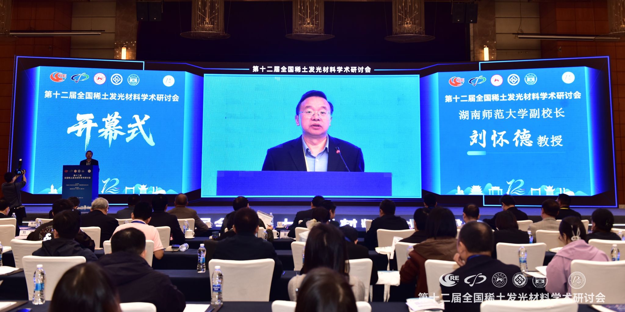 刘怀德代表学校向与会嘉宾表示热烈欢迎,并介绍了我校近年来在人才培养、科学研究和社会服务等方面取得的办学成就,特别是在稀土发光材料领域的前沿探索与创新成果。他强调,此次研讨会为学界同行提供了重要的学习与交流机会,期望会议能搭建有效合作平台,共同推动稀土发光材料学科的发展进步。