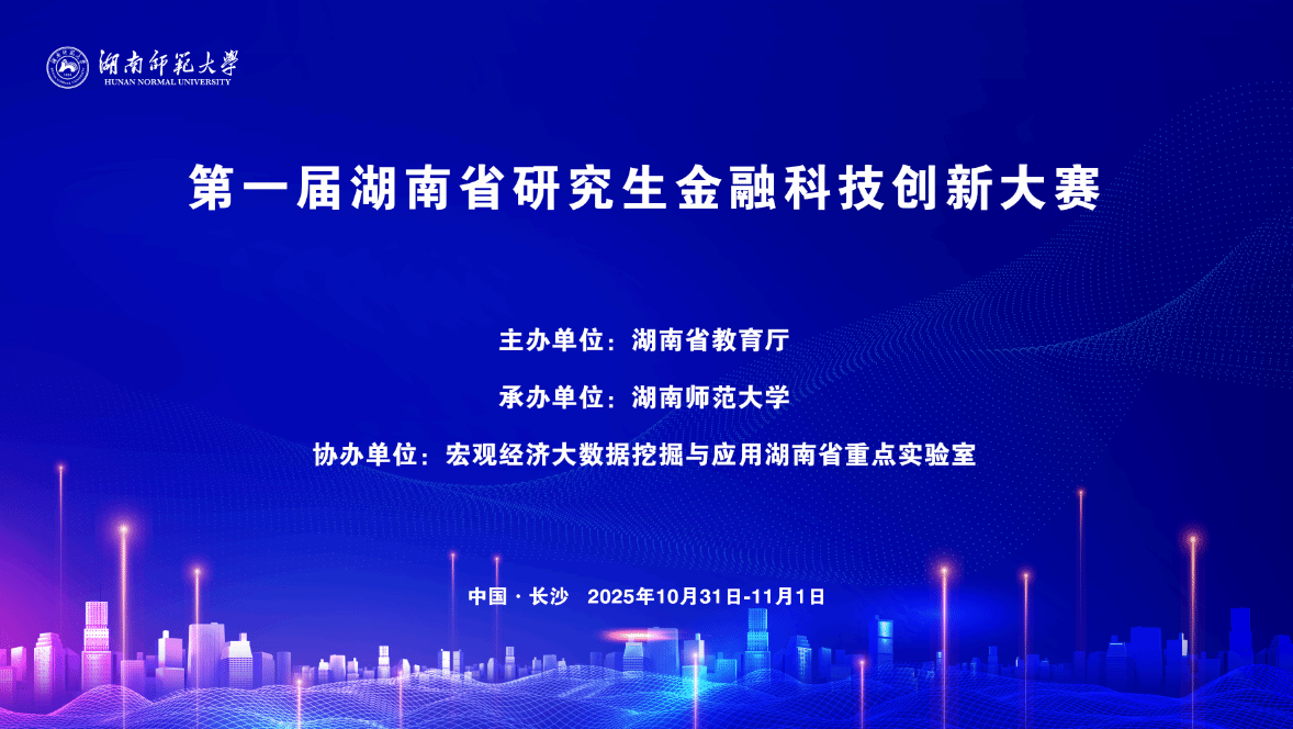 (记者 刘飞 刘欣语)11月1日,由湖南省教育厅主办、湖南师范大学承办、宏观经济大数据挖掘与应用湖南省重点实验室协办的第一届湖南省研究生金融科技创新大赛在我校中和楼举行。省教育厅学位管理与研究生教育处二级调研员刘梦清、我校副校长刘怀德出席开幕式。商学院党委书记龚舒主持开幕式。