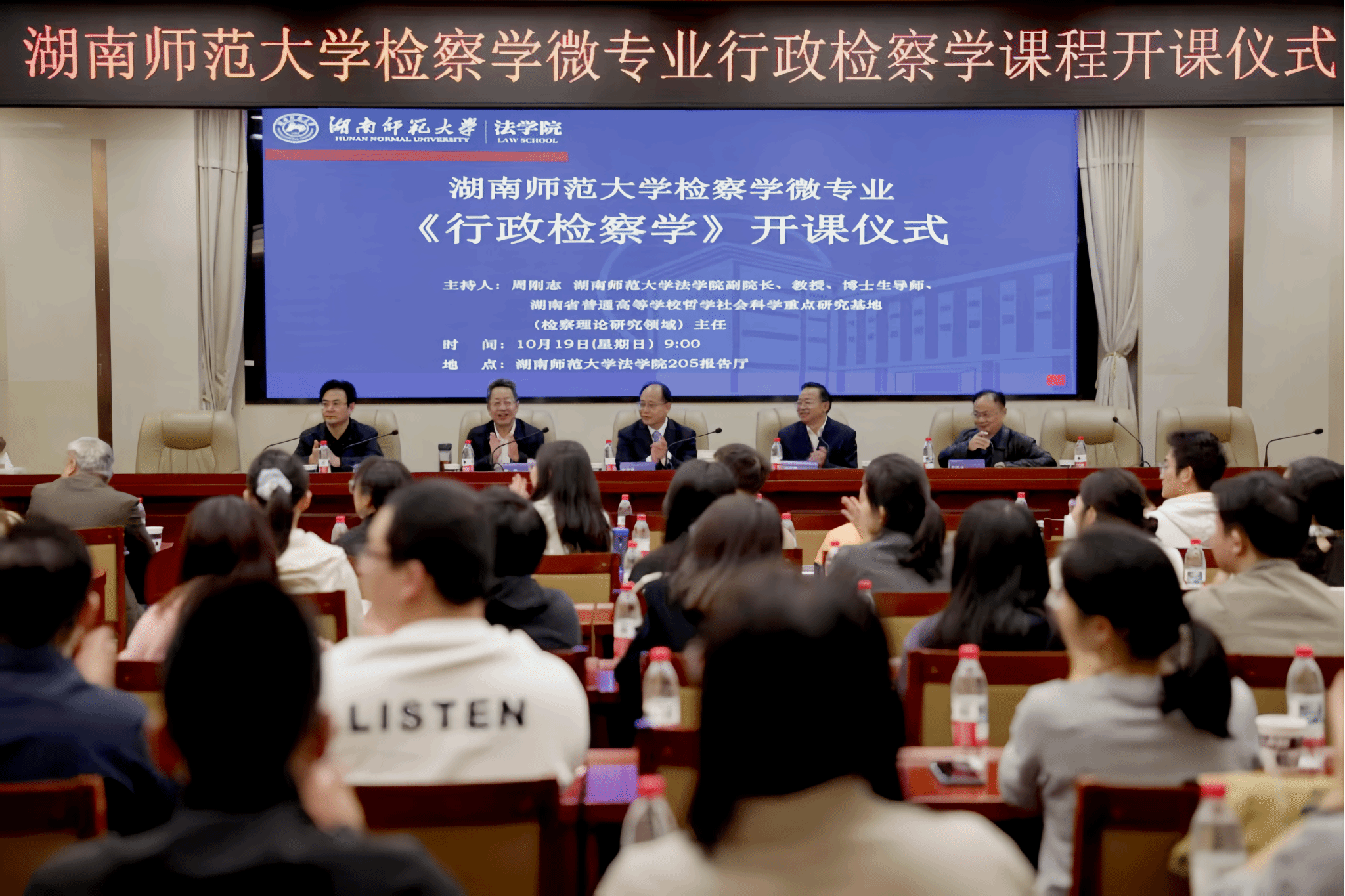 (供稿 法学院 记者 钟杨 周赛)近日,我校在法学院205报告厅举行检察学微专业《行政检察学》开课仪式,最高人民检察院检委会委员、行政检察厅厅长张相军出席仪式并作专题授课,湖南省人民检察院党组成员、副检察长谈固,我校副校长刘怀德分别致辞。湖南省高校哲学社会科学重点研究基地(检察理论研究领域)主任、我校法学院副院长周刚志教授主持本次活动。