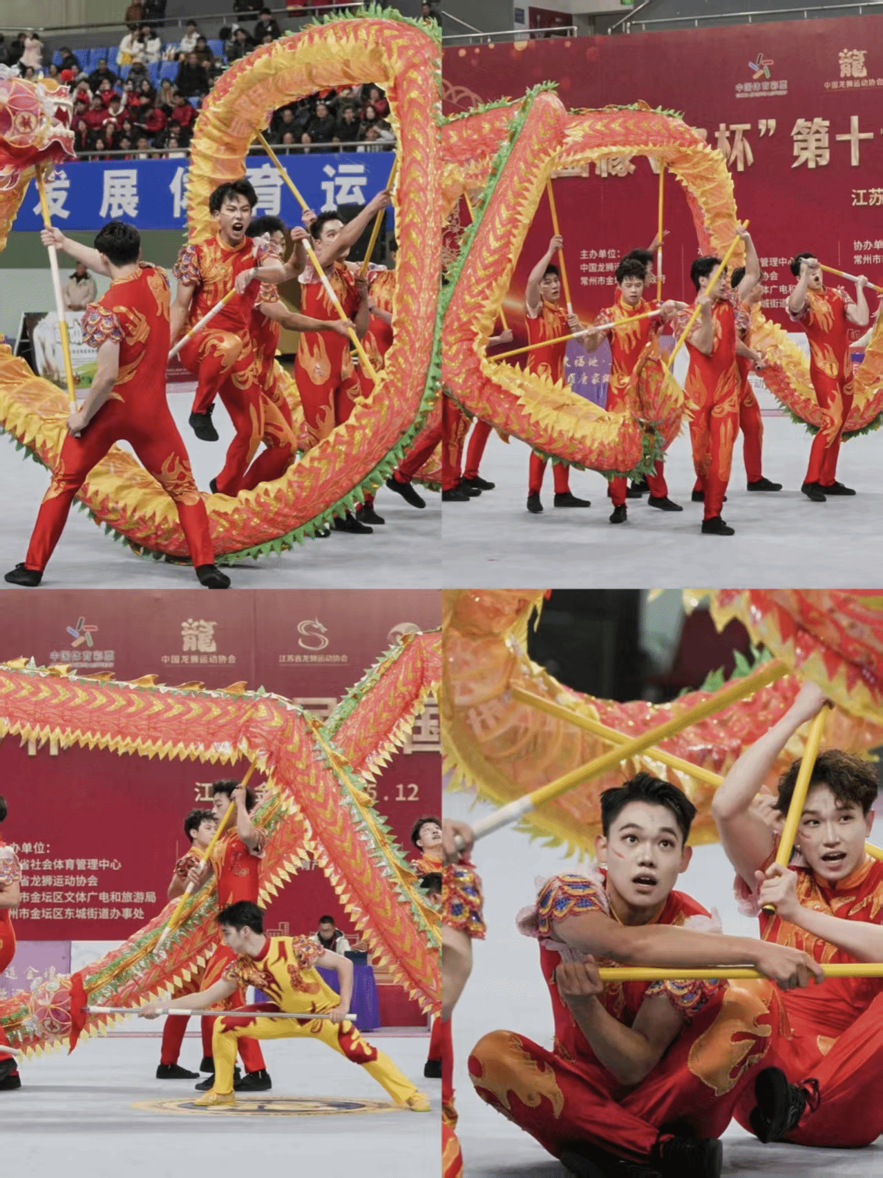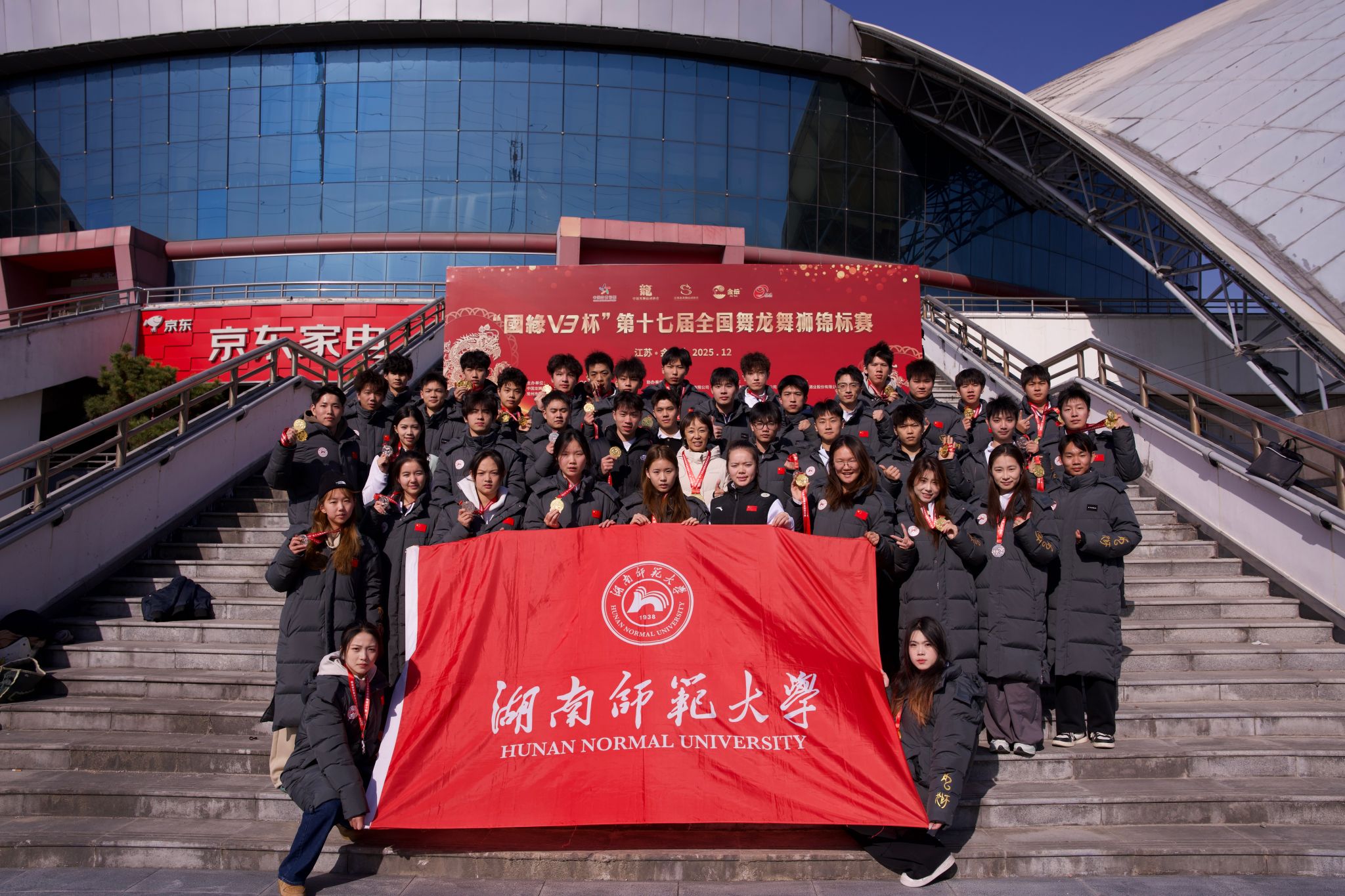 (供稿 体育学院)12月9日,“国缘V3杯”第十七届全国舞龙舞狮锦标赛在江苏常州圆满收官。我校龙狮团共派出42名运动员,由体育学院党委书记李波担任领队。运动员们发扬龙狮精神、演绎精彩技艺,共斩获两金两银的佳绩,其中男子规定舞龙、传统舞龙项目均获第一名,男子规定北狮、女子自选舞龙项目均获第二名,展现了师大学子的风采与中华文化的魅力。