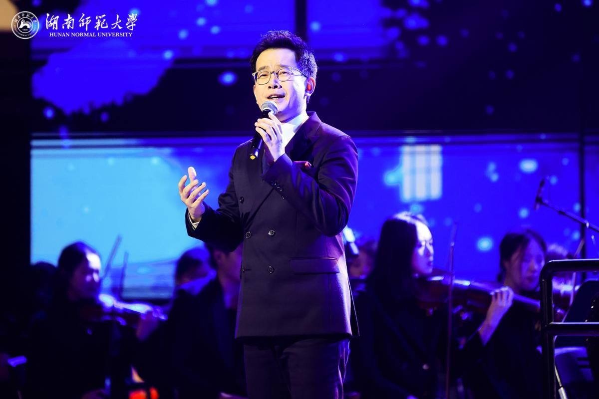 联欢会在附小麓苗舞蹈团带来的开场舞《智行少年》中拉开帷幕,小舞者们灵动的动作,搭配“萌狮助阵、科技同行”的创意瞬间点燃全场热情。时尚民乐《骐骥》中千年丝竹与现代乐队跨界碰撞,演奏者们以精湛的技艺展开穿越古今的音乐对话。古典舞《蘭叙》以兰为意,演员们舞出了幽谷自芳的从容与风雨不折的坚韧,在清雅乐声中尽显东方美学的深邃与曼妙。经典新编《浏阳河》在保留原曲深情内核的基础上注入现代编曲巧思,竹笛、钢琴与乐队伴奏相得益彰,让这首深植湖湘儿女血脉的旋律荡起新时代的涟漪。服饰秀《潇湘瓷韵》以校博物馆馆藏长沙窑文物为魂,将瓷的温润、服饰的灵动与光影的璀璨融为一体,重现千年窑火淬炼的匠心。歌曲《天地龙鳞》勾勒了“龙的传人”在新时代破浪前行的铿锵姿态,让中华文明底蕴与龙鳞象征的民族风骨交相辉映。由刘仲华校长和全体校领导班子成员一同参与的、60多位教授带来的合唱《明天会更好》,真挚歌声传递对学子、对家国的恒久期盼,温暖和声中满含对未来的美好憧憬。交响乐作品《采茶调》让观众随着音符走入潇湘的雾霭春色,感受东方田园诗意的交响画卷。《玛依拉变奏曲》灵动旋律与丰富变奏展现出哈萨克族姑娘的聪慧与对生活的热爱。《查尔达什舞曲》展现琴弓之下既有月光独语的柔情,又有火焰旋转的炽烈。著名歌唱家、音乐学院石倚洁教授接连献上三首佳作,一首《是你一直想着我》以饱满深情抒发了革命老区人民对党的感恩与对时代的致敬,在《我的太阳》这首意大利的永恒赞歌中传递爱与希望,歌剧《茶花女》经典选段《饮酒歌》,则以欢快的旋律、热烈的和声点燃全场,联欢会在欢腾氛围中圆满落幕。