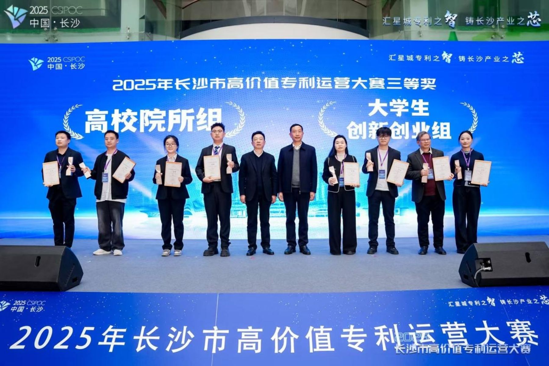 (供稿 科技处)11月24日至25日,2025年长沙市高价值专利运营大赛(以下简称“2025长高赛”)决赛在长沙成功举办。本届大赛以“汇星城专利之智 铸长沙产业之芯”为主题,吸引了全市100多项高价值专利项目参与角逐。我校在此次大赛中表现突出,共有3项成果获奖,充分展示了我校在生物医药领域的创新活力与科研实力。