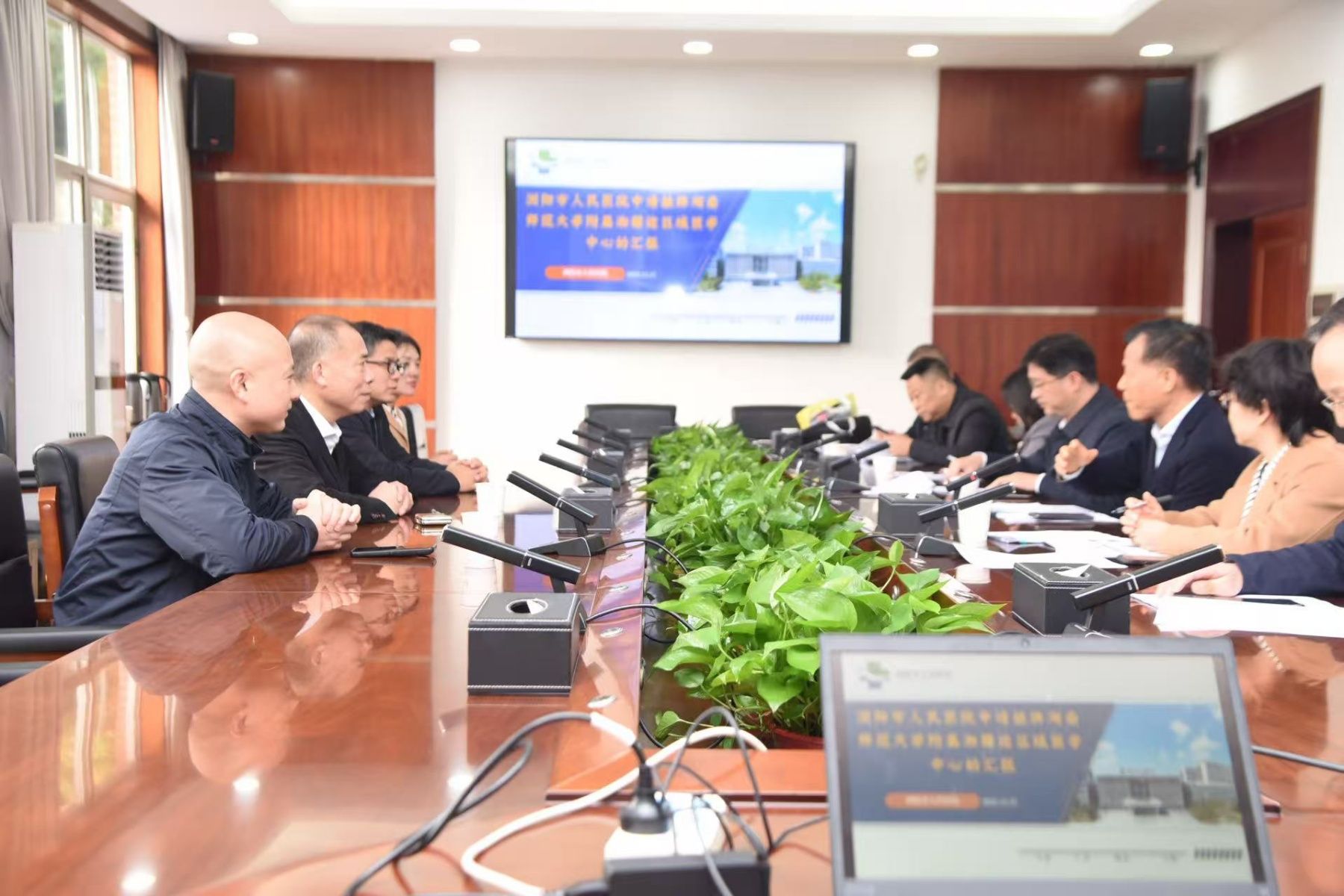 浏阳市人民医院就浏阳区域情况、医院基本情况等问题进行详细的汇报,重点围绕医院发展规划、专病中心与“五大中心”建设等方面进行系统介绍。汇报提出,医院近年来持续推进卒中中心、胸痛中心、创伤中心等重点平台建设,加强科研项目和GCP建设,不断提升区域医疗服务能力和学科综合实力,并通过构建湘赣边区域医疗合作网络,推动优质医疗资源下沉,更好服务区域群众健康需求。