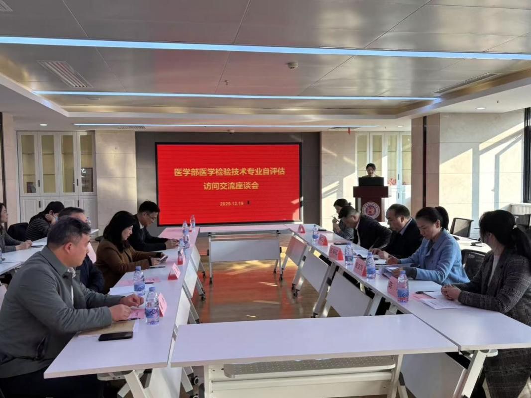 会后,专家组在医学部领导的带领下参观了办学条件,从教学楼到实验室,从理论知识传授到实践能力训练,从课内专业培养到课外学习资源的提供,专家组通过实地调研对医学部的办学条件有了更清晰的认识。随后举行的教师座谈会中,参会教师结合自身教学实践,就教学过程中遇到的难点问题、教学研究与改革的创新探索尝试与专家组进行了深入探讨。专家组更加全面地了解了医学检验技术专业的教学大纲实施情况与课堂开展形式,并对学分设置、学业考核等方面存在的问题提出建议。同时,部分专家组成员在仁医楼207教室查阅医学检验技术本科专业的毕业论文、考试试卷、实验报告、规章制度和自评报告的相关支撑材料等,通过书面材料进一步掌握专业建设的实际情况。