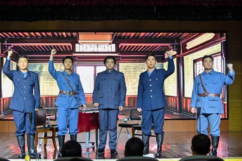 全剧谢幕时,全体演员合诵,“一个人的信仰是孤勇,两个人的信仰是爱情,一群人的信仰是志同道合,一个民族的信仰是中国”,将演出推向新的高潮。
